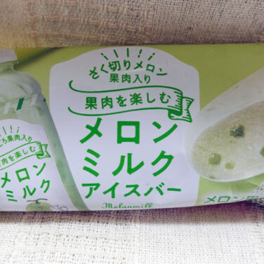 こちらのアイスは、チルド飲料のメロンミルクを表現したアイスです。ミルク感はまろやかさは感じられるものの、ほぼメロン尽くしとなる、メロン好きにはたまらないアイスでしたね。メロン果肉が密集している部分は、かたい食感だと感じるかもしれません。メロンの独特の甘味と旨味と香りがぎゅと詰まった1本です。