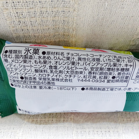 ミックスフルーツ味のアイスは、柔らかくねっとりとしたとろける食感です。